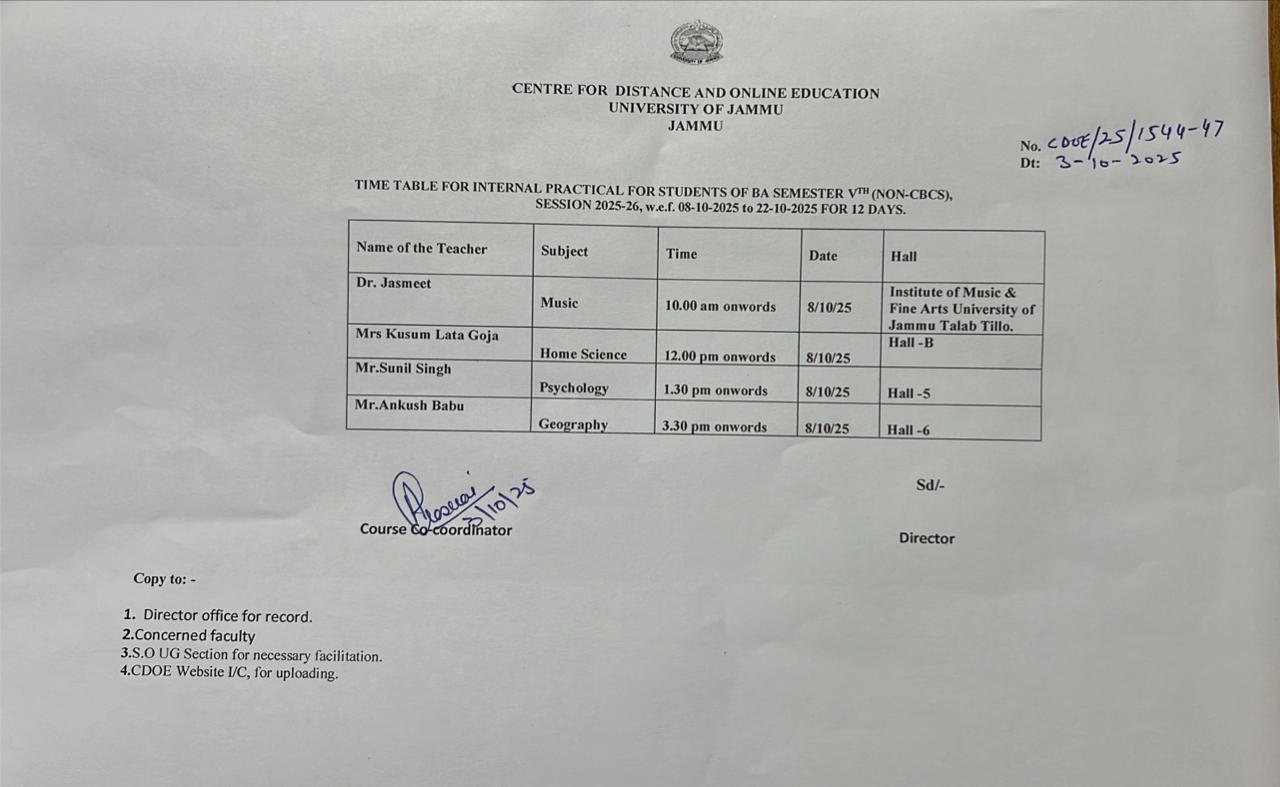 ONLINE EDUCATION, UNIVERSITY OF JAMMU |