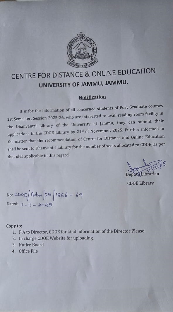 Avail reading room facility in the Dhanvantri Library of the University of Jammu |