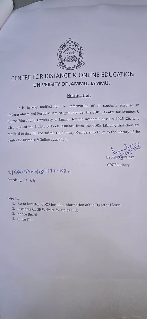 Notification regarding to avail the facility of book issuance from CDOE library |